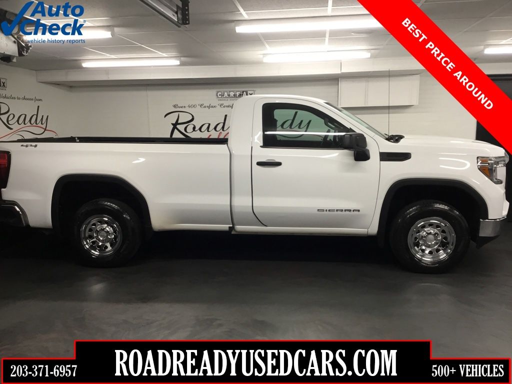 * A HARD TO FIND 4X4 REGULAR CAB WITH AN EIGHT FOOT BED - WE DELIVER TO ALL 50 STATES *, * 150 POINT SAFETY & MAINTENANCE INSPECTION *, * ONE OWNER * CLEAN AUTOCHECK *, * A PERFECT AUTOCHECK HISTORY REPORT *, * NEW CAR DEALER FRESH TRADE *, * LIKE NEW CONDITION *, * DEPENDABLE AND AFFORDABLE *, * A RARE FIND *, * MUST SEE *, * HOT COLOR COMBO *, * BEST PRICE IN THE STATE *, * PRICED BELOW JD POWER RETAIL *, 170 Amp Alternator, 220 Amp Alternator, 3.42 Rear Axle Ratio, 4-Way Manual Driver Seat Adjuster, 4-Way Manual Passenger Seat Adjuster, 4-Wheel Disc Brakes, ABS brakes, Apple CarPlay/Android Auto, Auxiliary External Transmission Oil Cooler, Black Manual Outside Mirrors, Chrome Surround Grille w/Black Mesh, Convenience Package, Cruise Control, Deep-Tinted Glass, Electric Rear-Window Defogger, Electronic Stability Control, EZ Lift Power Lock & Release Tailgate, Front 40/20/40 Split-Bench Seat, Front Frame-Mounted Black Recovery Hooks, Heated Power-Adjustable Outside Mirrors, Heavy-Duty Air Filter, Hitch Guidance, LED Cargo Area Lighting, Manual Windows, Power Door Locks, Power Front Windows w/Driver Express Up/Down, Power Front Windows w/Passenger Express Down, Preferred Equipment Group 1SA, Radio: GMC Infotainment Audio System, Rear step bumper, Remote Keyless Entry, Snow Plow Prep Package, Solar Absorbing Tinted Glass, Trailering Package.