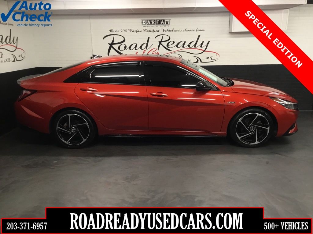 * A SPECIAL EDITION ELANTRA - WE DELIVER TO ALL 50 STATES *, * 150 POINT SAFETY & MAINTENANCE INSPECTION *, * ONLY 2 OWNERS *, * AUTOCHECK CERTIFIED *, * WELL MAINTAINED *, * NEW CAR DEALER FRESH TRADE *, * SHOWROOM NEW, INSIDE AND OUT *, * DEPENDABLE AND AFFORDABLE *, * SAVE ON GAS, AND LOOK GOOD DOING IT! *, * A RARE FIND *, * MUST SEE *, * HOT COLOR COMBO *, 18 x 7.5J Alloy Wheels, 6 Speakers, Air Conditioning, Alloy wheels, Apple CarPlay & Android Auto, Auto High-beam Headlights, Automatic temperature control, Brake assist, Combination Cloth & Leather Seating Surfaces, Electronic Stability Control, Exterior Parking Camera Rear, First Aid Kit, Four wheel independent suspension, Front Bucket Seats, Front dual zone A/C, Fully automatic headlights, Heated door mirrors, Heated front seats, Heated Front Sport Seats, Leather Shift Knob, Option Group 01, Power door mirrors, Power driver seat, Power moonroof, Power windows, Radio: AM/FM/HD/SiriusXM Display Audio, Rear Bumper Applique, Remote keyless entry, Security system, Speed control, Split folding rear seat, Spoiler, Steering wheel mounted audio controls, Telescoping steering wheel, Tilt steering wheel, Traction control, Variably intermittent wipers.