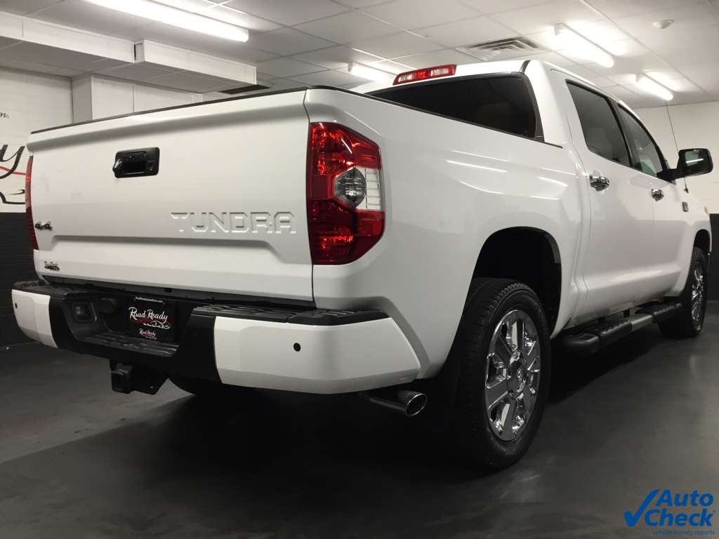 * A PLATINUM TUNDRA WITH A RARE 1794 PACKAGE - THIS BAD BOY HAS IT ALL - WE DELIVER TO ALL 50 STATES *, * AUTOCHECK CERTIFIED *, * WELL MAINTAINED *, * NEW CAR DEALER FRESH TRADE *, * ABSOLUTELY PRISTINE CONDITION THROUGHOUT *, * ONE OF A KIND *, * THIS IS THE NEEDLE IN A HAYSTACK DEAL *, * MUST SEE *, * HOT COLOR COMBO *, * A REAL SHOW STOPPER *, * LOWEST MILEAGE AROUND *, * BEST PRICE IN THE STATE *, 12 Speakers, 20 x 8J Split 5-Spoke Alloy Disc Wheels, 4.30 Axle Ratio, Air Conditioning, Alloy wheels, Automatic temperature control, Bedliner w/Deck Rail System, Blind Spot Monitor Lane Change Assist, CD player, Entune App Suite, Exterior Parking Camera Rear, Front Bucket Seats, Front fog lights, Heated & Ventilated Front Bucket Seats, Heated door mirrors, Leather Seat Trim, Leather steering wheel, Navigation System, Power driver seat, Power moonroof, Power windows, Radio: Entune Premium w/JBL Audio & Navigation, Remote keyless entry, Running Boards, SIRIUSXM Satellite Radio, Speed control, Steering wheel mounted audio controls, Telescoping steering wheel, Tilt steering wheel, Traction control, TRD Dual Exhaust, TRD Sway Bar, Turn signal indicator mirrors, Ventilated front seats.
